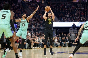 [스포티비뉴스=맹봉주 기자] 4쿼터엔 뛸 필요도 없었다.골든스테이트 워리어스는 26일(이하 한국시간) 미국 캘리포니아주 샌프란시스코 체이스 센터에서 열린 2024-2025 NBA(미국프로농구) 정규 시즌 홈경기에서 샬럿 호네츠를 128-92로 크게 이겼다.지미 버틀러 영입 효과를 톡톡히 누리고 있다. 최근 4연승 포함 버틀러 합류 후 7경기 6승 1패다. 서부 콘퍼런스 순위는 9위다.가비지 타임이 일찍 나오며 버틀러는 19분만 뛰었다. 6득점 8리바운드 5어시스트로 개인 기록은 눈에 띄지 않았지만, 팀 플레이에 주력하며 골든스테이트