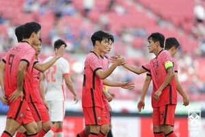 [스포티비뉴스=장하준 기자·김한림 영상기자] 첫 경기를 승리한 대표팀의 분위기는 훈훈했습니다.지난 20일 대회 첫 경기였던 중국전에 3대0 완승을 거둔 대한민국 국가대표팀. 한 수 아래였던 중국을 제압하며 동아시안컵 우승을 향한 순조로운 출발을 알렸는데요.최근 황의조를 위협할 수 있을 정도로 성장한 조규성은 중국전 세 번째 골을 넣으며 자신의 가치를 증명했습니다. 또한 조규성의 성장만큼 중국전 골 세레머니가 화제였는데요. 조규성은 “최근에 이 세레머니를 보고 괜찮은 것 같아서 세레머니를 했는데 반응이 좋고 많이들 좋아해 주시는 것
