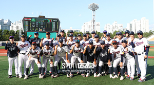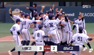 [스포티비뉴스=이성필 기자/이상돈 영상 기자] 이마트노브랜드배 고등부 결승은 올해 전국 대회 최강자를 정리하는 무대. 서울고가 2관왕 경남고를 타선 폭발, 11-4로 누르며 환호했습니다. 성남고는 덕수고와 수준 높은 투수전을 벌여 1-0으로 이겼습니다. 누가 우승해도 이상하지 않았던 운명의 한판. 성남고는 김지민, 서울고는 김동현을 마운드에 올렸습니다. 1회부터 서울고가 선취점을 올리며 균형을 깹니다. 3회 타석에 들어선 김태헌, 시원한 스윙으로 우중간 담장을 넘기는 투런 홈런을 해냅니다. 덕아웃으로 들어와 동료들과 환호하는 모습이