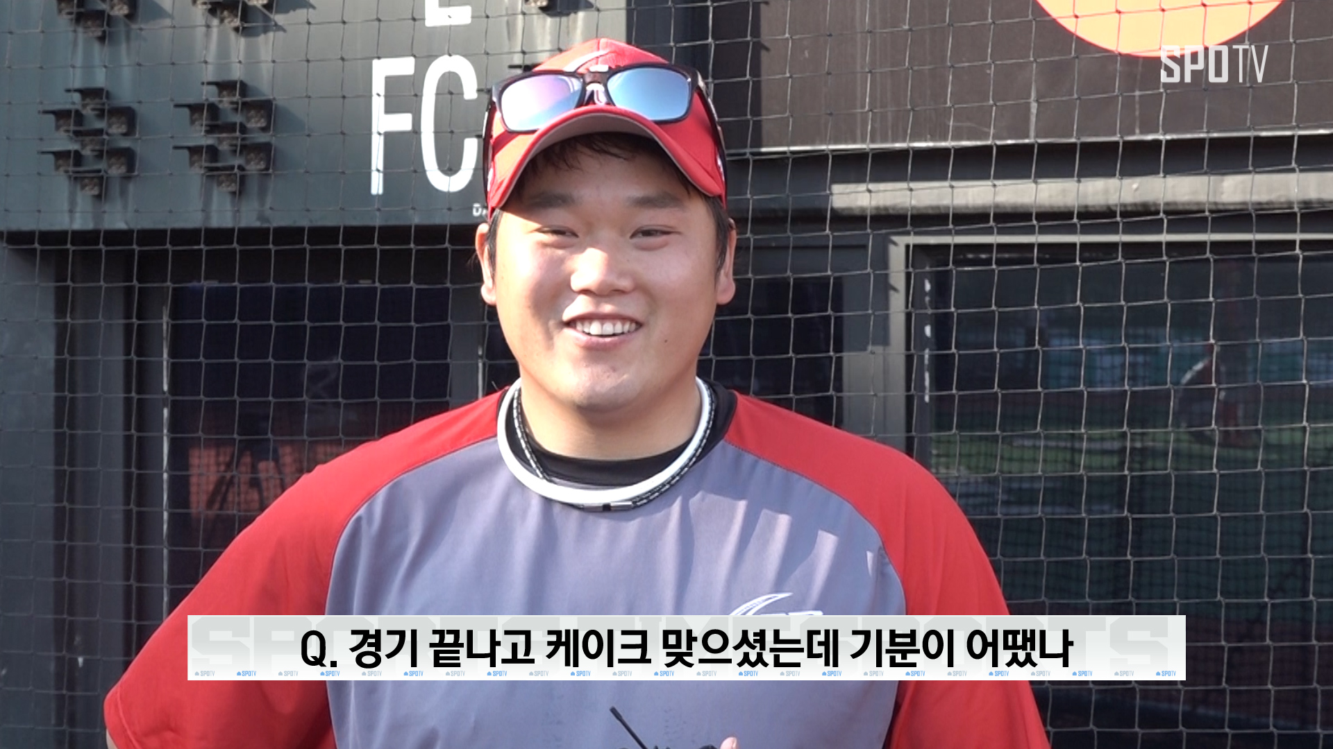 경기 끝나고 생크림 세레머니의 대한 질문에 김태훈은 "생크림인 줄 알았는데 눈이 따갑고 맛도 이상하더라 다음에 주한이에게 복수하겠다.라고 말했다.