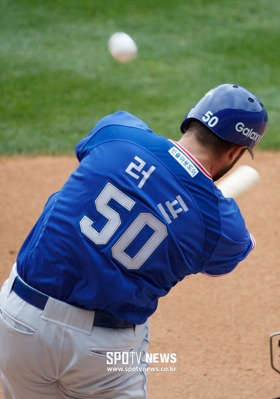 [스포티비뉴스=잠실, 한희재 기자] 두산 베어스와 삼성 라이온즈의 2017 KBO 리그 경기가 6일 오후 서울 잠실야구장에서 열렸다. 3회초 2사, 삼성 러프가 안타를 날리고 있다.