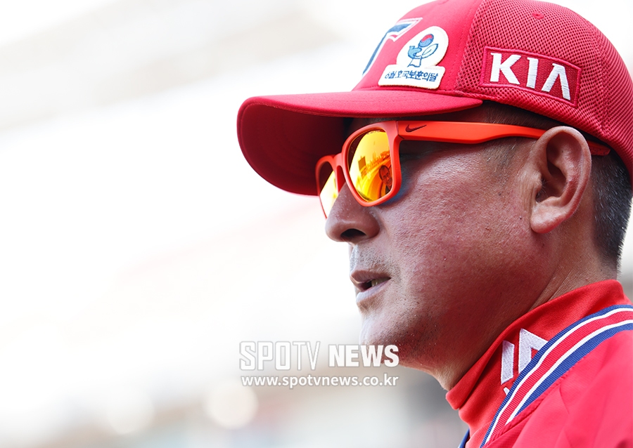 [스포티비뉴스=광주, 한희재 기자] KIA 타이거느와 넥센 히어로즈의 2017 KBO 리그 경기가 9일 오후 광주-KIA챔피언스필드에서 열린다. 이야기를 나누고 있는 KIA 김기태 감독.