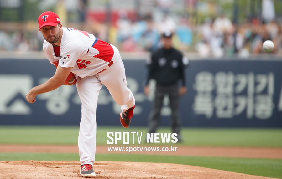 [스포티비뉴스=광주, 한희재 기자] KIA 타이거즈와 넥센 히어로즈의 2017 KBO 리그 경기가 10일 오후 광주-KIA챔피언스필드에서 열렸다. 1회초 KIA 선발투수 팻 딘이 역투하고 있다.