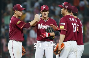 [스포티비뉴스=광주, 한희재 기자] KIA 타이거즈와 넥센 히어로즈의 2017 KBO 리그 경기가 10일 오후 광주-KIA챔피언스필드에서 열렸다. 8-4로 승리한 넥센 선수들이 하이파이브를 나누고 있다.