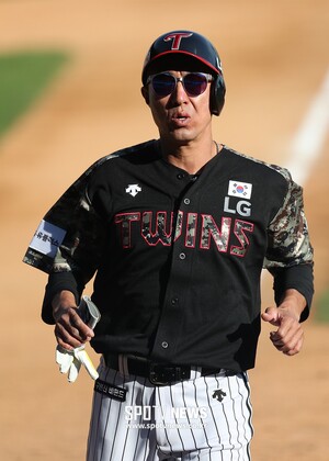 [스포티비뉴스=잠실, 곽혜미 기자] 11일 오후 서울 잠실야구장에서 열린 2017 KBO 리그 LG 트윈스와 SK 와이번스의 경기. 2회말 무사 만루 상황 LG 조윤준의 희생 플라이 때 3루 주자 정성훈이 득점하고 있다.