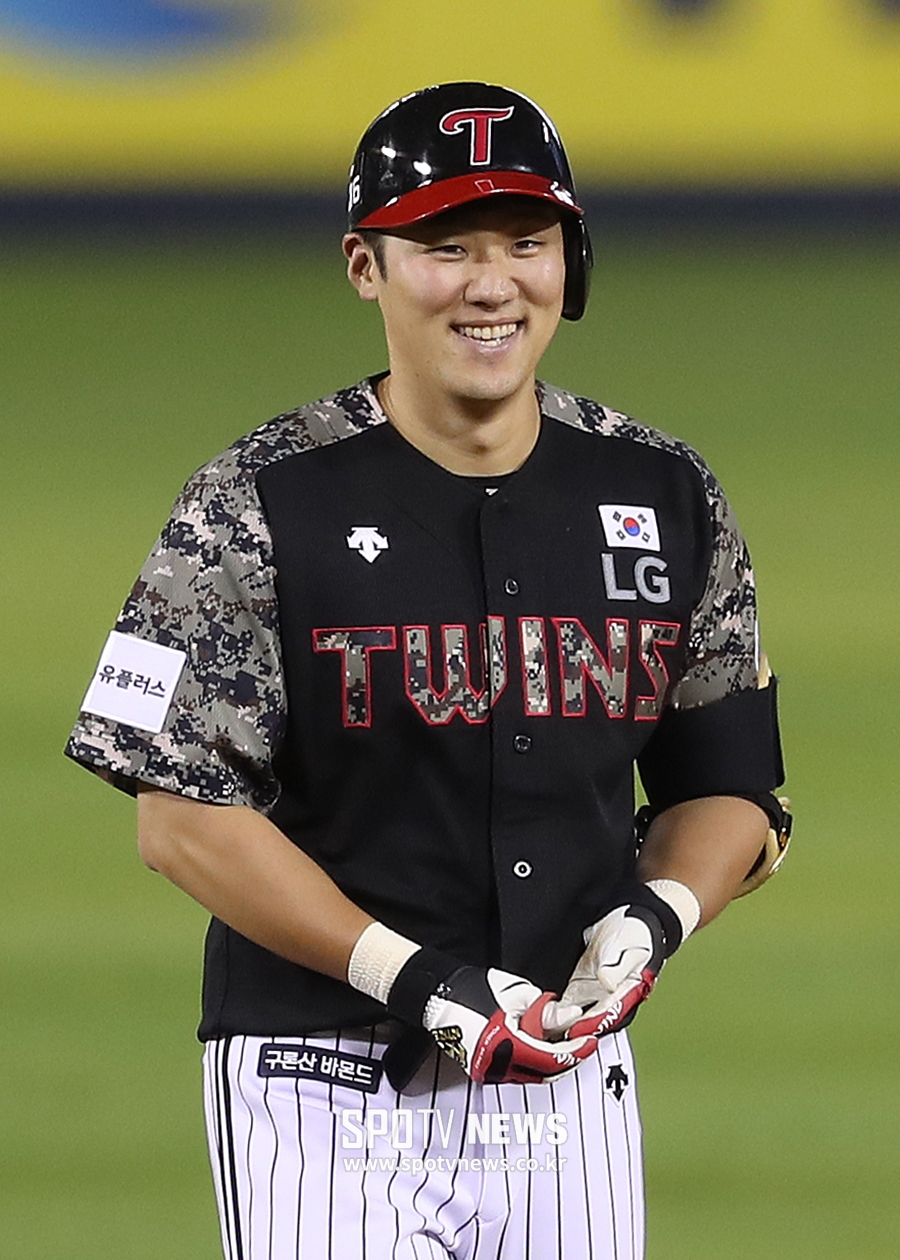 [스포티비뉴스=잠실, 곽혜미 기자] 11일 오후 서울 잠실야구장에서 열린 2017 KBO 리그 LG 트윈스와 SK 와이번스의 경기. 8회말 2사 3루 상황에서 사이클링 히트에 홈런만을 남겨둔 양석환이 2루타를 치고 아쉬움의 미소를 짓고 있다.