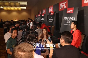 [스포티비뉴스=싱가포르, 곽혜미 기자] UFC 파이트 나이트 111(UFC in 싱가포르) 미디어 데이가 15일 오후 싱가포르 마리나 베이 샌즈 호텔에서 열렸다. 웰터급 김동현이 인터뷰를 하고 있다.