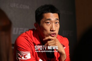 [스포티비뉴스=싱가포르, 곽혜미 기자] UFC 파이트 나이트 111(UFC in 싱가포르) 미디어 데이가 15일 오후 싱가포르 마리나 베이 샌즈 호텔에서 열렸다. 웰터급 김동현이 인터뷰를 하고 있다.