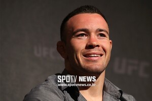 [스포티비뉴스=싱가포르, 곽혜미 기자] UFC 파이트 나이트 111(UFC in 싱가포르) 미디어 데이가 15일 오후 싱가포르 마리나 베이 샌즈 호텔에서 열렸다. 김동현과 싸우는 콜비 코빙턴이 미소를 짓고 있다.
