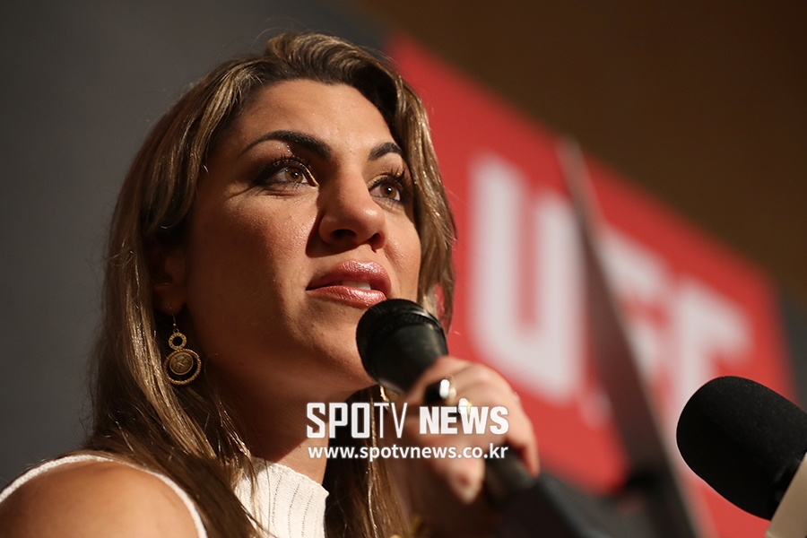 [스포티비뉴스=싱가포르, 곽혜미 기자] UFC 파이트 나이트 111(UFC in 싱가포르) 미디어 데이가 15일 오후 싱가포르 마리나 베이 샌즈 호텔에서 열렸다. 여성 밴텀급 베치 코헤이아가 인터뷰를 하고 있다.