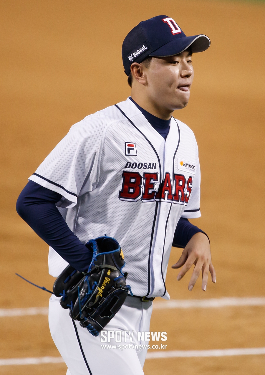 [스포티비뉴스=잠실, 한희재 기자] 두산 베어스와 NC 다이노스의 2017 KBO 리그 경기가 16일 오후 서울 잠실야구장에서 열렸다. 4회초 2사 만루, 강판 된 두산 선발투수 이영하가 더그아웃으로 들어가고 있다.