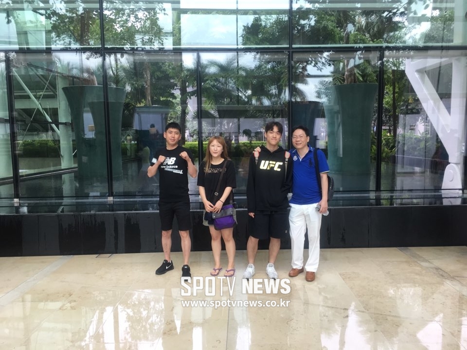 고상진 고승우 부자는 SK Btv와 SPOTV ON이 SPOTV ON 가입자를 대상으로 실시한 UFC 파이트 나이트 111 관람 이벤트에서 행운을 차지한 주인공이다. 지난 16일 공개 계체와 17일 대회 관람권, 마리나 베이 샌즈 호텔 숙박권과 왕복 항공권이 제공됐다.