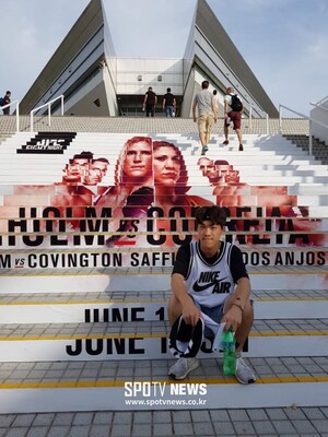 지난 17일 싱가포르 인도어 스타디움에서 열린 UFC 파이트 나이트 111을 관람한 고승우 학생은 "아버지는 원래 격투기를 그다지 좋아하지 않으세요. 이번 경험으로 아버지께 격투기 매력을 알려드린 거 같아 즐거워요"라며 해맑게 웃었다.