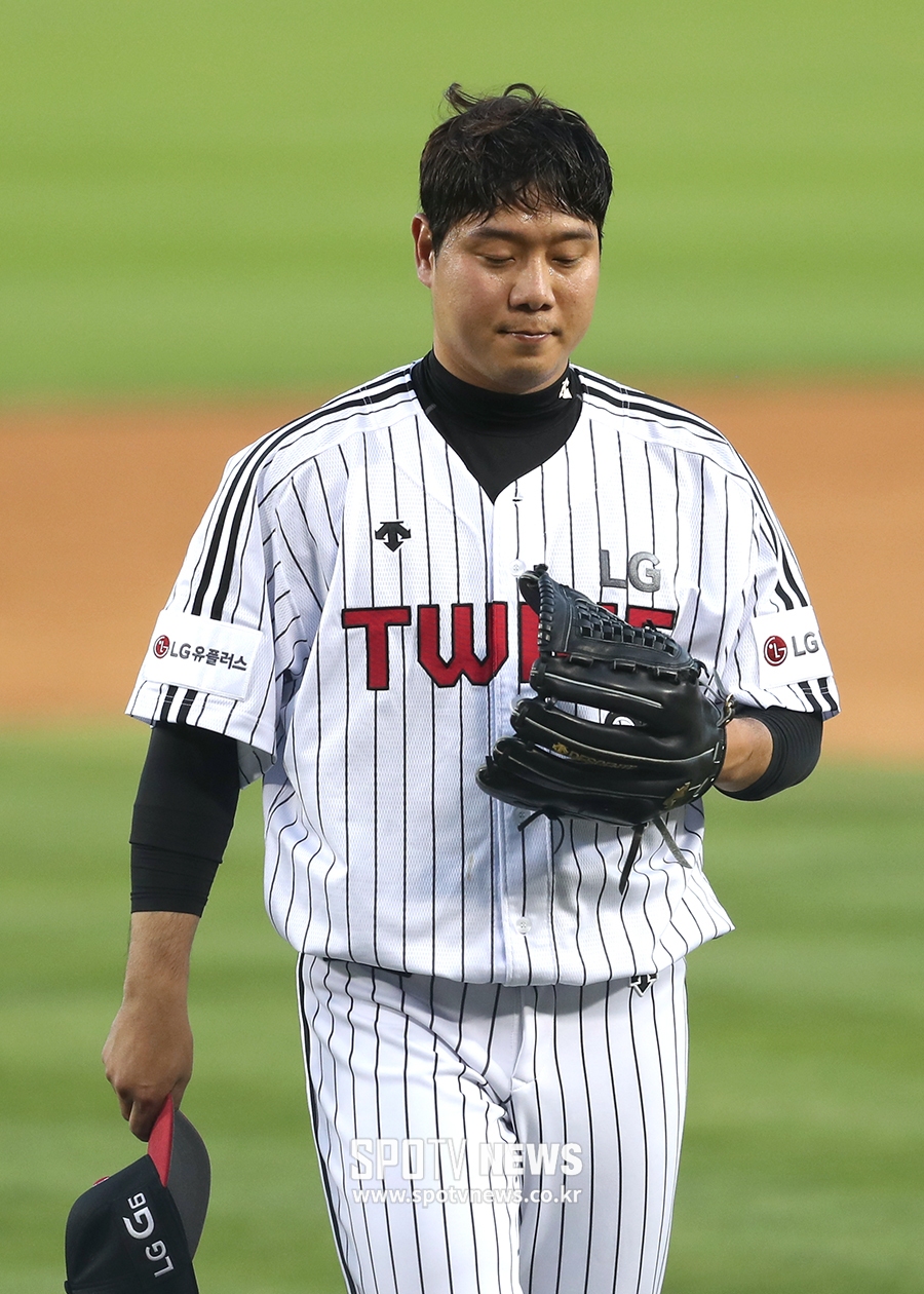 [스포티비뉴스=잠실, 곽혜미 기자] 22일 오후 서울 잠실야구장에서 열린 2017 KBO 리그 LG 트윈스와 삼성 라이온즈의 경기. 3회초 3실점을 한 LG 선발 류제국이 이닝 종료 후 아쉬운 표정을 짓고 있다.