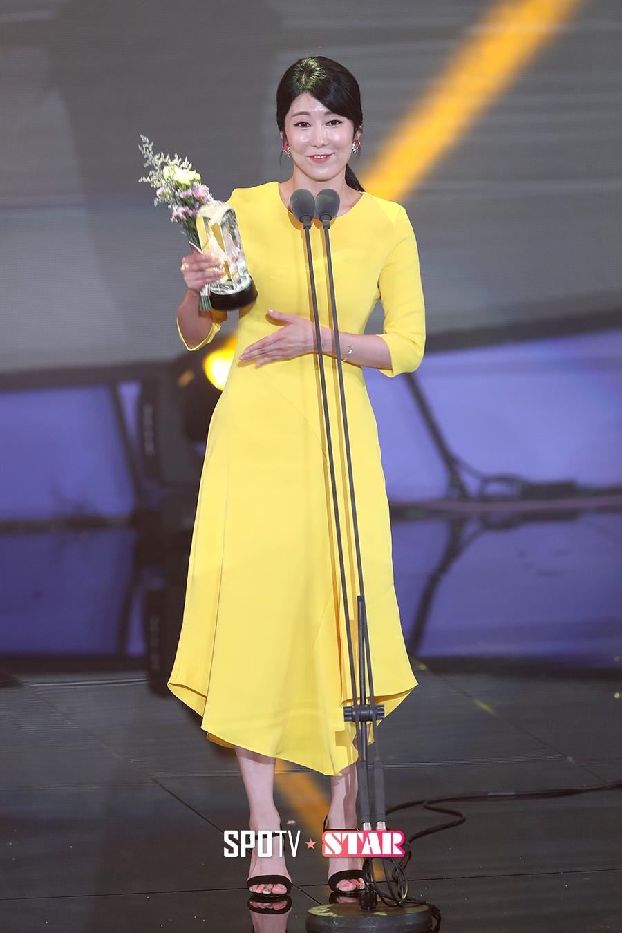 [스포티비뉴스=곽혜미 기자] 23일 오후 서울 중구 장충체육관에서 열린 'MAXIM K-MODEL AWARDS'(맥심 어워즈). 방송인 사유리가 간바레오또상을 수상한 후 소감을 말하고 있다.