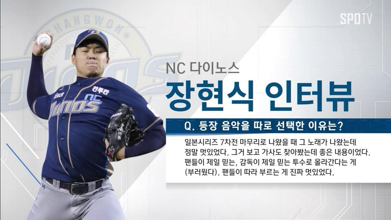 [스포티비뉴스=취재 신원철 기자/영상 이나현 PD]프로 야구 선수들이 개성을 드러낼 수 있는 방법은 많지 않죠. 정해진 규격의 장비와 유니폼을 입고 그라운드에 나서기 때문인데요. 대신 등장 음악이나 응원가로 자신을 표현하곤 합니다. NC의 미래 에이스 장현식에게는 또 다른 의미가 있습니다. 동기 부여를 위해 등장 음악을 골랐다고 합니다.