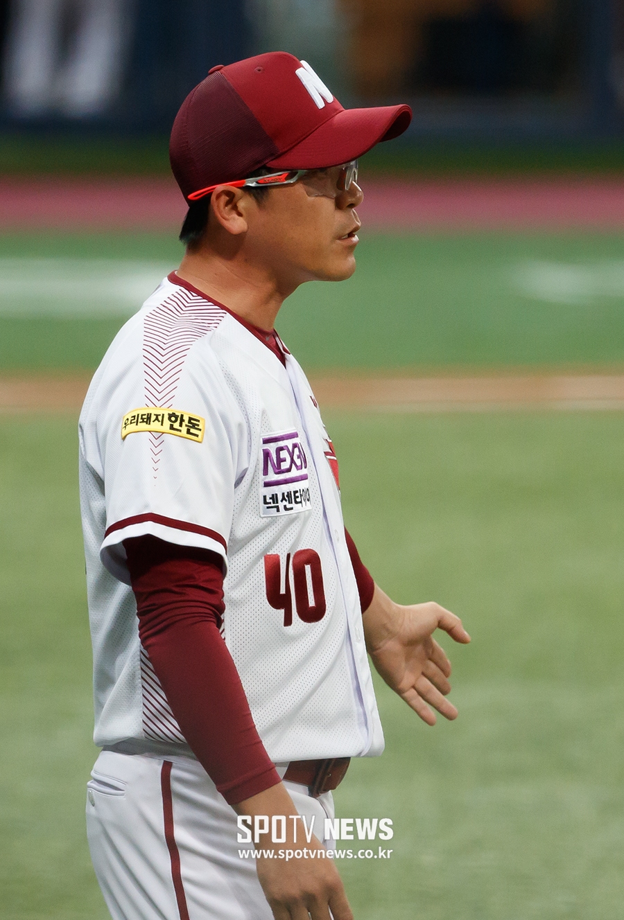 [스포티비뉴스=고척돔, 한희재 기자] 넥센 히어로즈와 LG 트윈스의 2017 KBO리그가 25일 오후 서울 구로구 고척스카이돔에서 열렸다. 3회말 1사 1루, 넥센 1루주자 이정후가 LG 선발투수 허프의 견제에 아웃 당하자 장정석 감독이 그라운드로 나와 이영재 1루심에게 어필하고 있다.