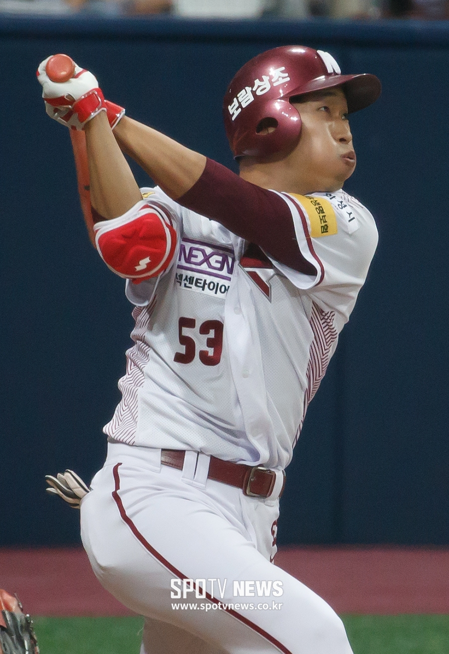 [스포티비뉴스=고척돔, 한희재 기자] 넥센 히어로즈와 LG 트윈스의 2017 KBO리그가 25일 오후 서울 구로구 고척스카이돔에서 열렸다. 7회말 2사 1루, 넥센 고종욱이 역전 적시 2루타를 날리고 있다.