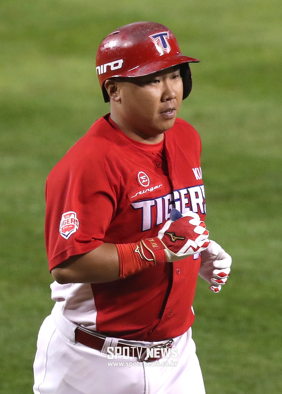 [스포티비뉴스=잠실, 곽혜미 기자] 1일 오후 서울 잠실야구장에서 열린 2017 KBO 리그 LG 트윈스와 KIA 타이거즈의 경기. 8회초 2사 KIA 이범호가 솔로포를 날리고 그라운드를 돌고 있다.
