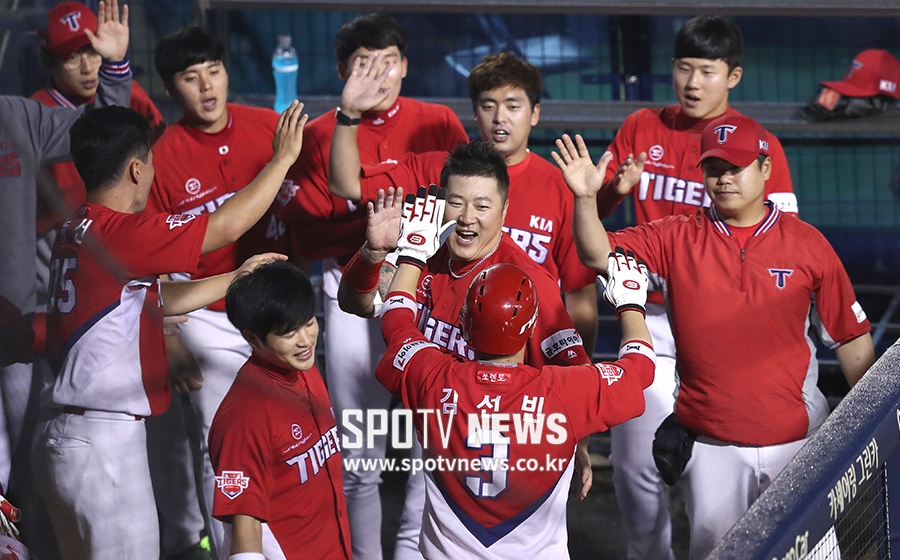 [스포티비뉴스=잠실, 신원철 기자] KIA 타이거즈는 1일 서울 잠실구장에서 열린 2017 타이어뱅크 KBO 리그 LG 트윈스와 경기에서 9회초까지 10-2로 앞서 있다. 이번 경기까지 5경기 연속 두 자릿수 득점이다. 이는 KBO 리그 신기록이다.