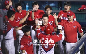 삼성을 상대로 주중 3연전에서 지난달 27일 11-4, 28일 13-4에 이어 29일 22-1 대승을 거두며 선두를 지켰다. 장소를 잠실로 옮겨 LG를 상대로 30일 경기를 10-6 승리로 마쳤다. 여기에 1일 경기까지 두 자릿수 득점으로 KBO 리그 신기록을 수립했다.