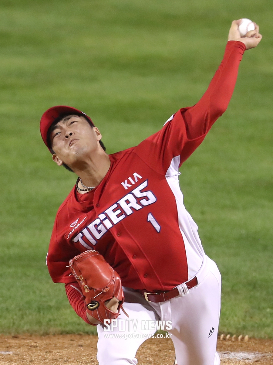 [스포티비뉴스=잠실, 곽혜미 기자] 1일 오후 서울 잠실야구장에서 열린 2017 KBO 리그 LG 트윈스와 KIA 타이거즈의 경기. 7회말 2사 1루 상황에서 KIA 심동섭이 역투하고 있다.
