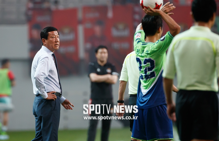 [스포티비뉴스=서울월드컵경기장, 한희재 기자] FC서울과 전북 현대의 2017 K리그 클래식 경기가 2일 오후 서울 마포구 성산동 서울월드컵경기장에서 열렸다. 0-1로 뒤지고 있는 전북 최강희 감독이 불만스런 표정을 짓고 있다.