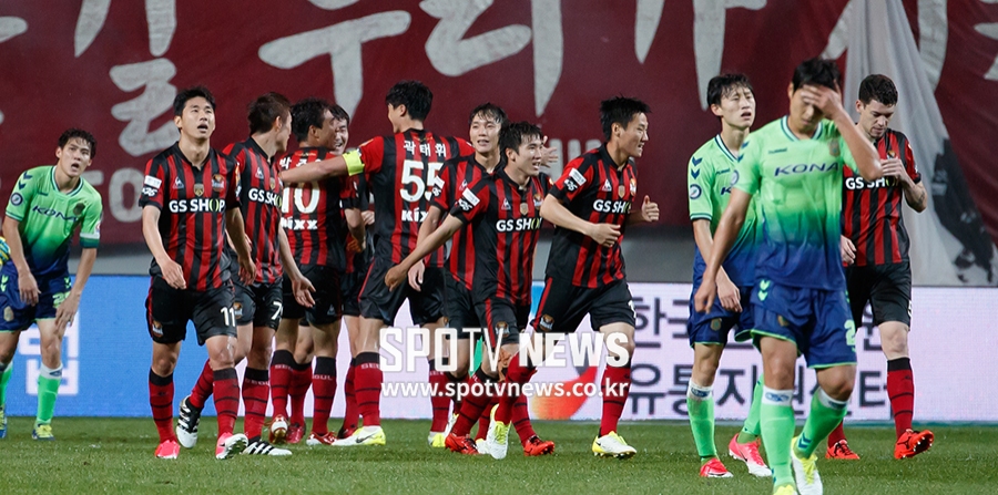 [스포티비뉴스=서울월드컵경기장, 한희재 기자] FC서울과 전북 현대의 2017 K리그 클래식 경기가 2일 오후 서울 마포구 성산동 서울월드컵경기장에서 열렸다. 종료 직전 터진 FC서울 박주영의 역전골에 선수들이 환호하고 있다.
