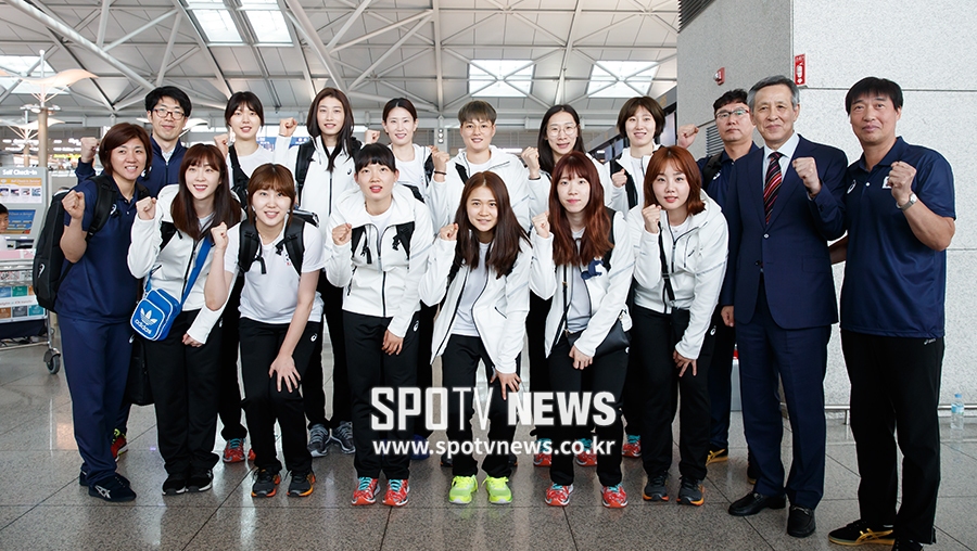 [스포티비뉴스=인천국제공항, 한희재 기자] 여자 배구 국가대표 선수단이 폴란드에서 열리는 2017 월드그랑프리 세계 여자배구대회에 출전하기 위해 4일 오전 인천국제공항을 통해 출국했다. 대표팀 선수들이 기념촬영을 하고 있다.