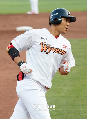 [스포티비뉴스=인천, 한희재 기자] SK 와이번스와 KIA 타이거즈의 2017 KBO 리그 경기가 5일 오후 SK 행복드림구장에서 열렸다. 1회말 2사 1루, SK 한동민이 KIA 팻 딘을 상대로 시즌 24호 홈런을 날린 후 베이스를 돌고 있다.