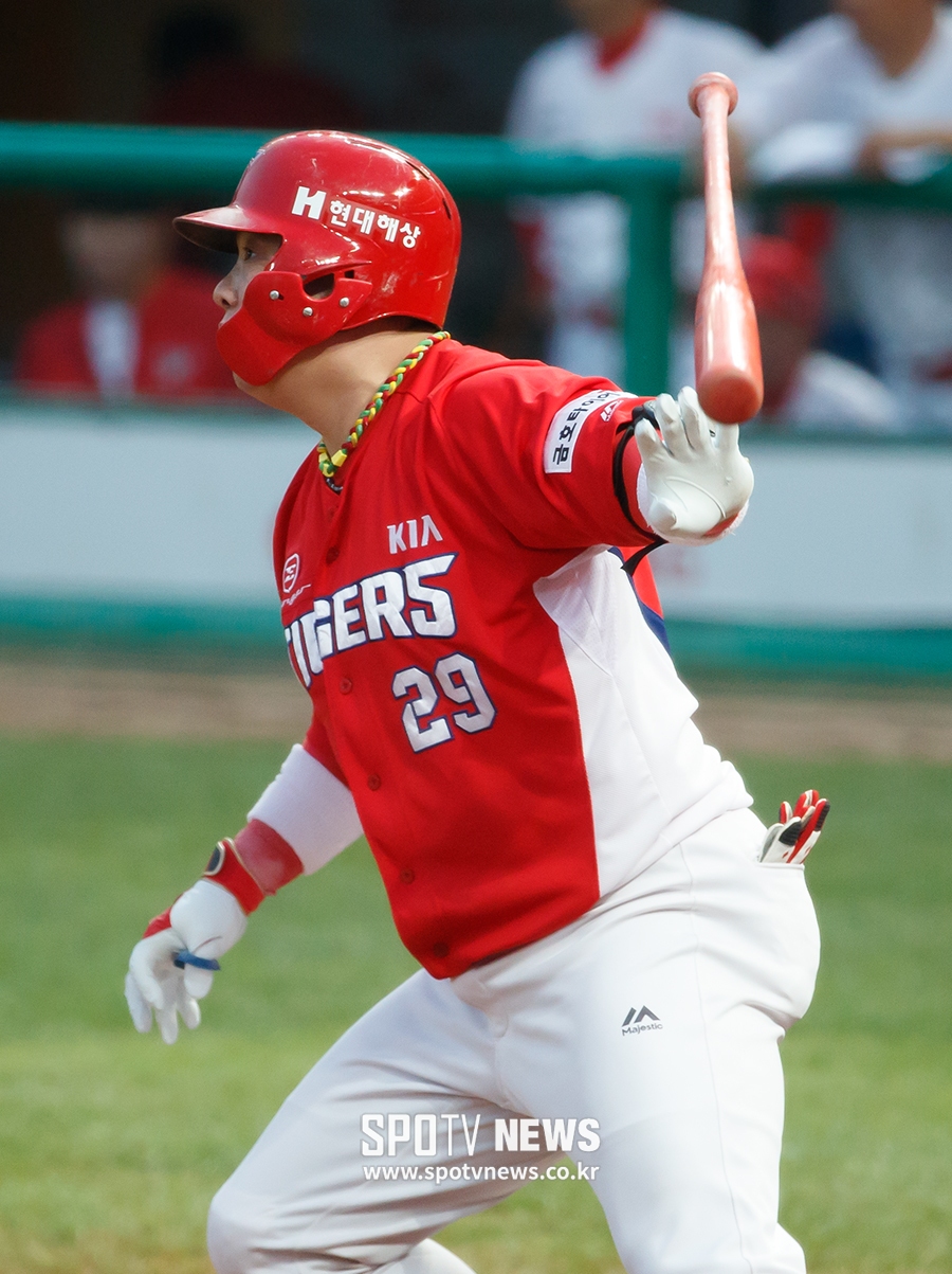 [스포티비뉴스=인천, 한희재 기자] SK 와이번스와 KIA 타이거즈의 2017 KBO 리그 경기가 5일 오후 인천 SK 행복드림구장에서 열렸다. 4회초 무사, KIA 선두타자 나지완이 중전 2루타를 날리고 있다.