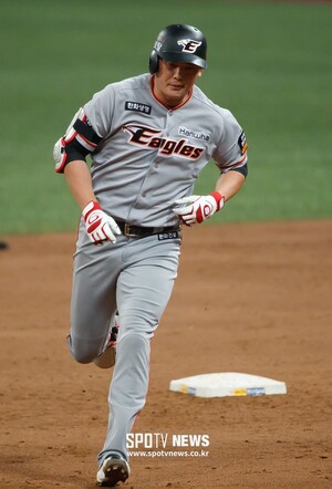 [스포티비뉴스=고척돔, 한희재 기자] 넥센 히어로즈와 한화 이글스의 2017 KBO리그가 6일 오후 서울 구로구 고척스카이돔에서 열렸다. 2회초 1사, 넥센 최원태를 상대로 솔로포를 날린 한화 이성열이 베이스를 돌고 있다.