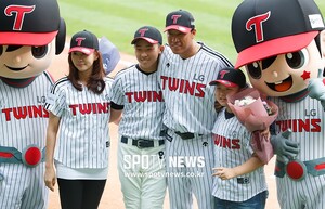[스포티비뉴스=잠실, 한희재 기자] LG 트윈스와 한화 이글스의 2017 KBO 리그 경기가 열리는 9일 오후 LG 이병규의 은퇴식이 진행됐다. 이병규가 가족과 기념촬영을 하고 있다.