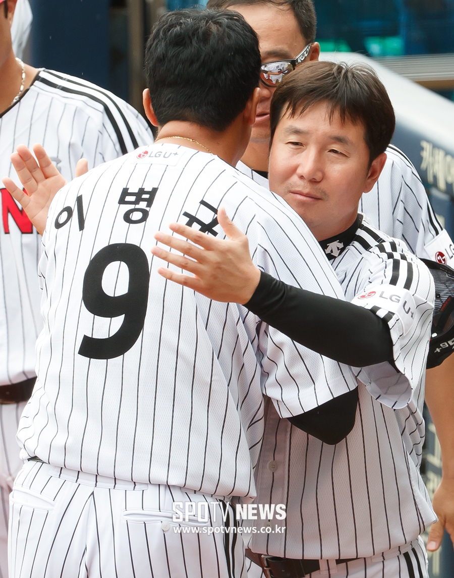 [스포티비뉴스=잠실, 한희재 기자] LG 트윈스와 한화 이글스의 2017 KBO 리그 경기가 열리는 9일 오후 LG 이병규의 은퇴식이 서울 잠실야구장에서 진행됐다. 이병규가 유지현 코치와 포옹을 나누고 있다.