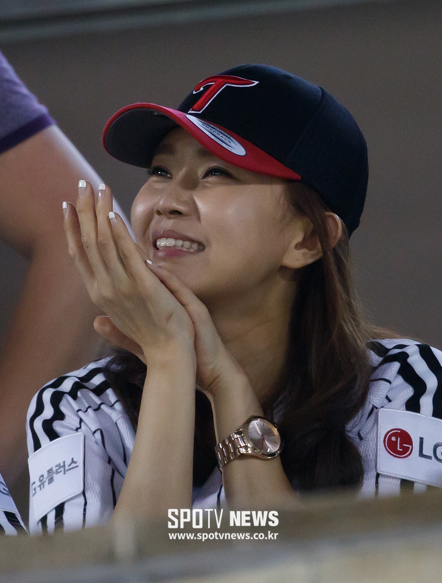 [스포티비뉴스=잠실, 한희재 기자] 9일 오후 LG 트윈스와 한화 이글스의 2017 KBO 리그 경기가 종료 된 후 은퇴 한 LG 이병규의 영구결번식이 열렸다. 이병규의 아내 류재희씨가 은퇴식을 지켜보고 있다.
