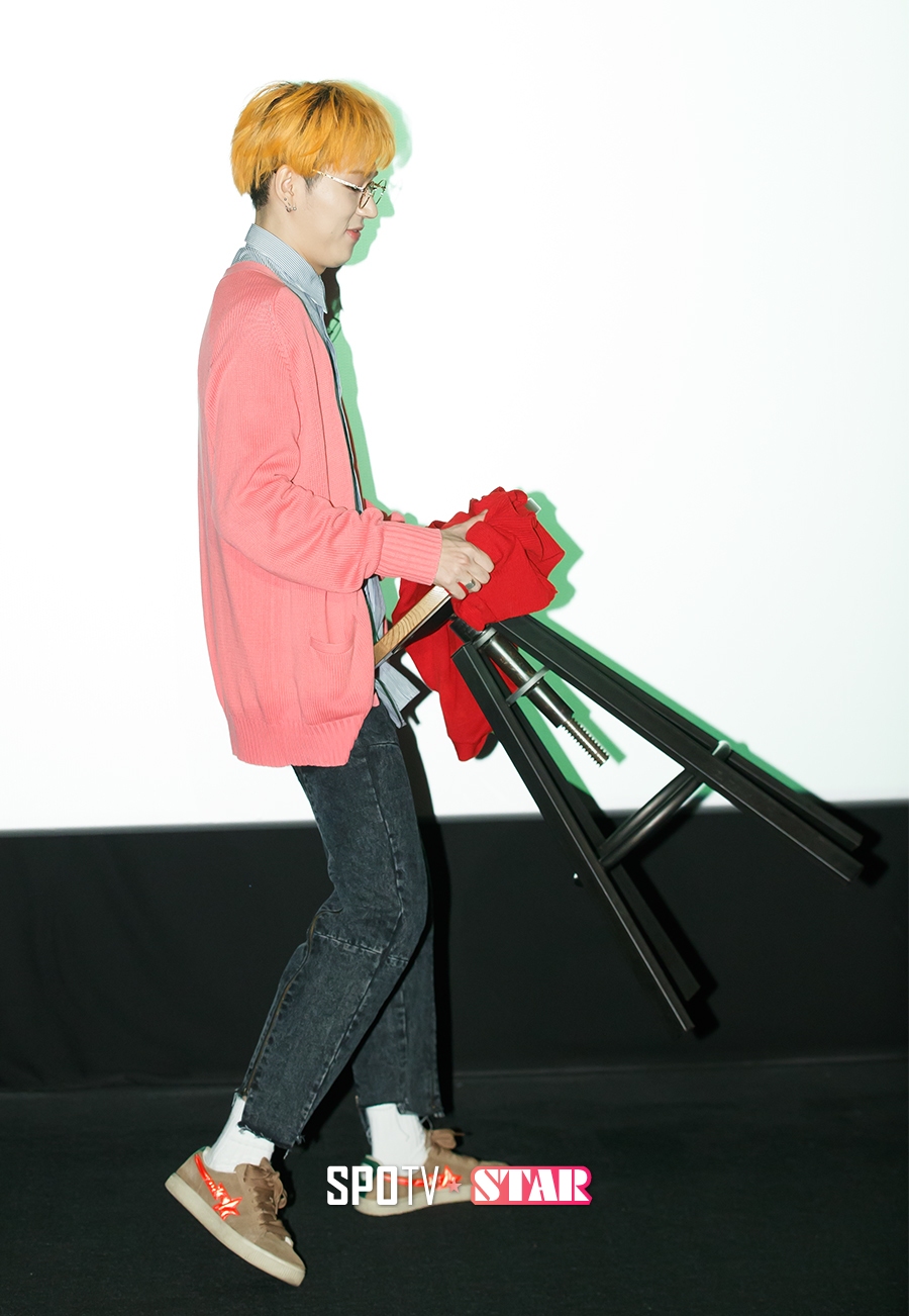 [스포티비뉴스=한희재 기자] 두 번째 미니 앨범 ‘TELEVISION’을 발표한 가수 지코가 12일 오후 서울 마포구 동교동 홍대 CGV에서 기자간담회를 열었다. 지코가 인터뷰를 위해 자신의 의자를 옮기고 있다.