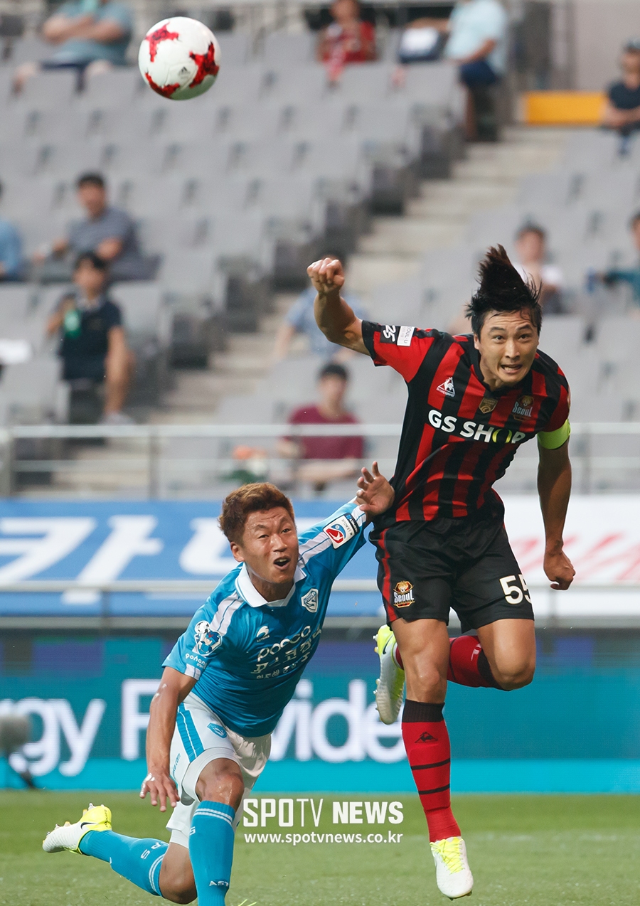 [스포티비뉴스=서울월드컵경기장, 한희재 기자] FC서울과 포항 스틸러스의 2017 K리그 클래식 경기가 12일 오후 서울 마포구 성산동 서울월드컵경기장에서 열렸다. FC서울 곽태휘의 헤딩슛이 골포트스로 향하고 있다.