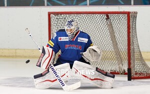 [스포티비뉴스=태릉선수촌, 한희재 기자] 대한민국 아이스하키 대표팀이 19일 오전 서울 노원구 공릉동 태릉선수촌 실내빙상장에서 공개 훈련을 열었다. 여자 대표팀 골리 신소정이 남자 대표팀과 함께 훈련을 하고 있다.
