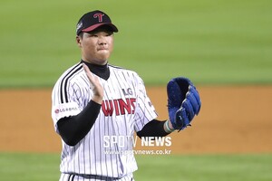 [스포티비뉴스=잠실, 곽혜미 기자] 1일 오후 서울 잠실야구장에서 열린 2017 KBO 리그 LG 트윈스와 롯데 자이언츠의 경기. 6회까지 무실점 호투를 펼친 LG 선발 김대현이 박수를 치고 있다.