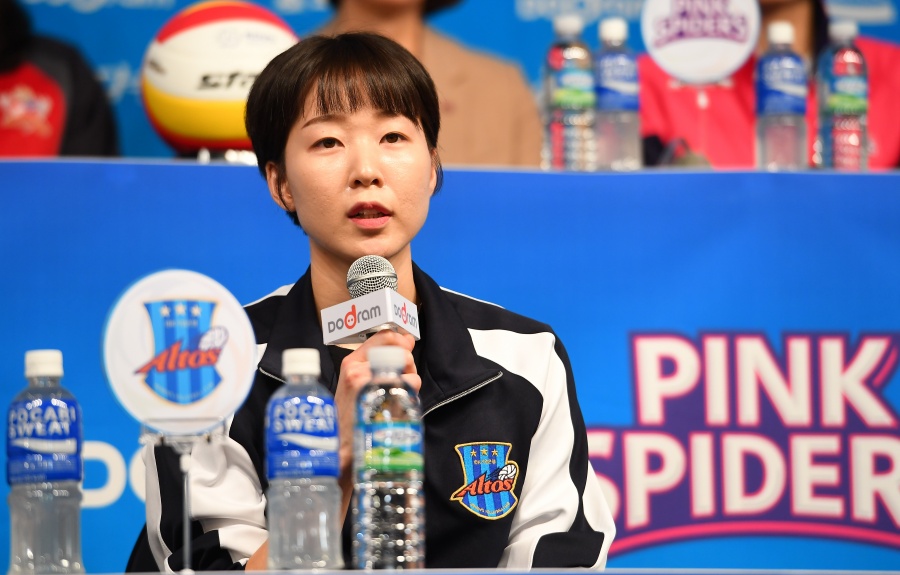 IBK기업은행은 전통적으로 훈련량이 많기로 소문난 팀이다. 이정철 IBK기업은행 감독의 훈련 스타일에 적응은 했는지, 훈련 강도가 적응이 되지 않아 '괜히 복귀한 건 아닌지' 고민한 적이 있었느냐는 질문이 나왔다.