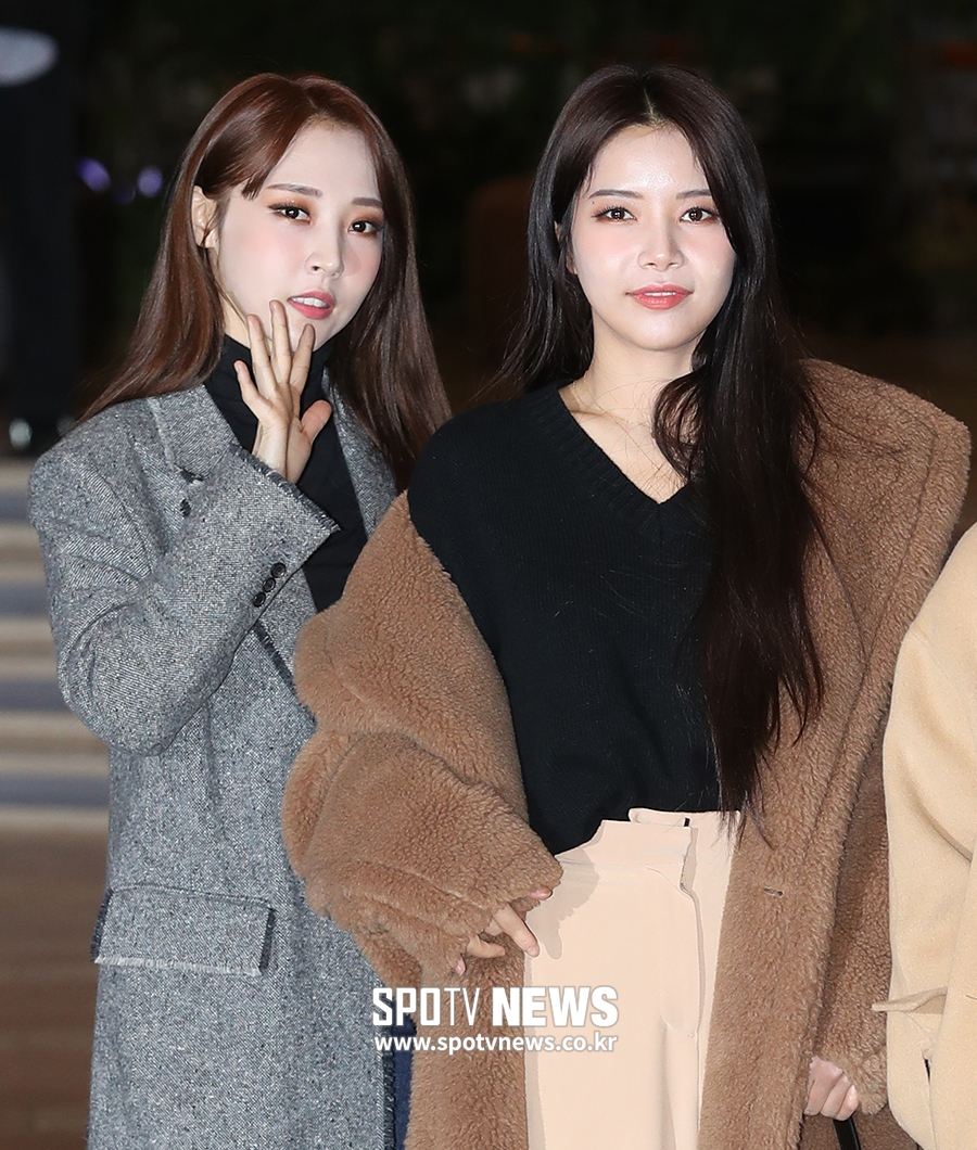 [스포티비뉴스=김포국제공항, 곽혜미 기자] 걸그룹 마마무가 일본에서 열리는 2018 엠넷 아시안 뮤직 어워즈 참석 차 11일 오전 김포국제공항을 통해 출국했다. 마마무문별(왼쪽), 솔라가 포즈를 취하고 있다.
