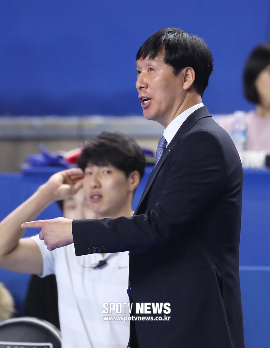 [스포티비뉴스=천안, 한희재 기자] 현대캐피탈과 우리카드의 2018-2019 도드람 V리그 남자부 경기가 17일 오후 충남 천안 유관순체육관에서 열렸다. 현대캐피탈 최태웅 감독이 선수들과 하이파이브를 하고 있다.