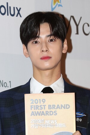 [스포티비뉴스=서울, 곽혜미 기자] 2019 대한민국 퍼스트브랜드 대상 시상식 레드카펫 행사가 19일 오후 서울 영등포구 여의도 콘래드 호텔에서 열렸다. 아스트로 차은우가 포즈를 취하고 있다.