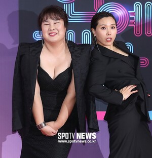 [스포티비뉴스=서울, 곽혜미 기자] 2018 KBS 연예대상 레드카펫 행사가 22일 오후 서울 영등포구 여의도 KBS 본관 시청자광장에서 열렸다. 개그우먼 김민경과 신봉선이 포즈를 취하고 있다.
