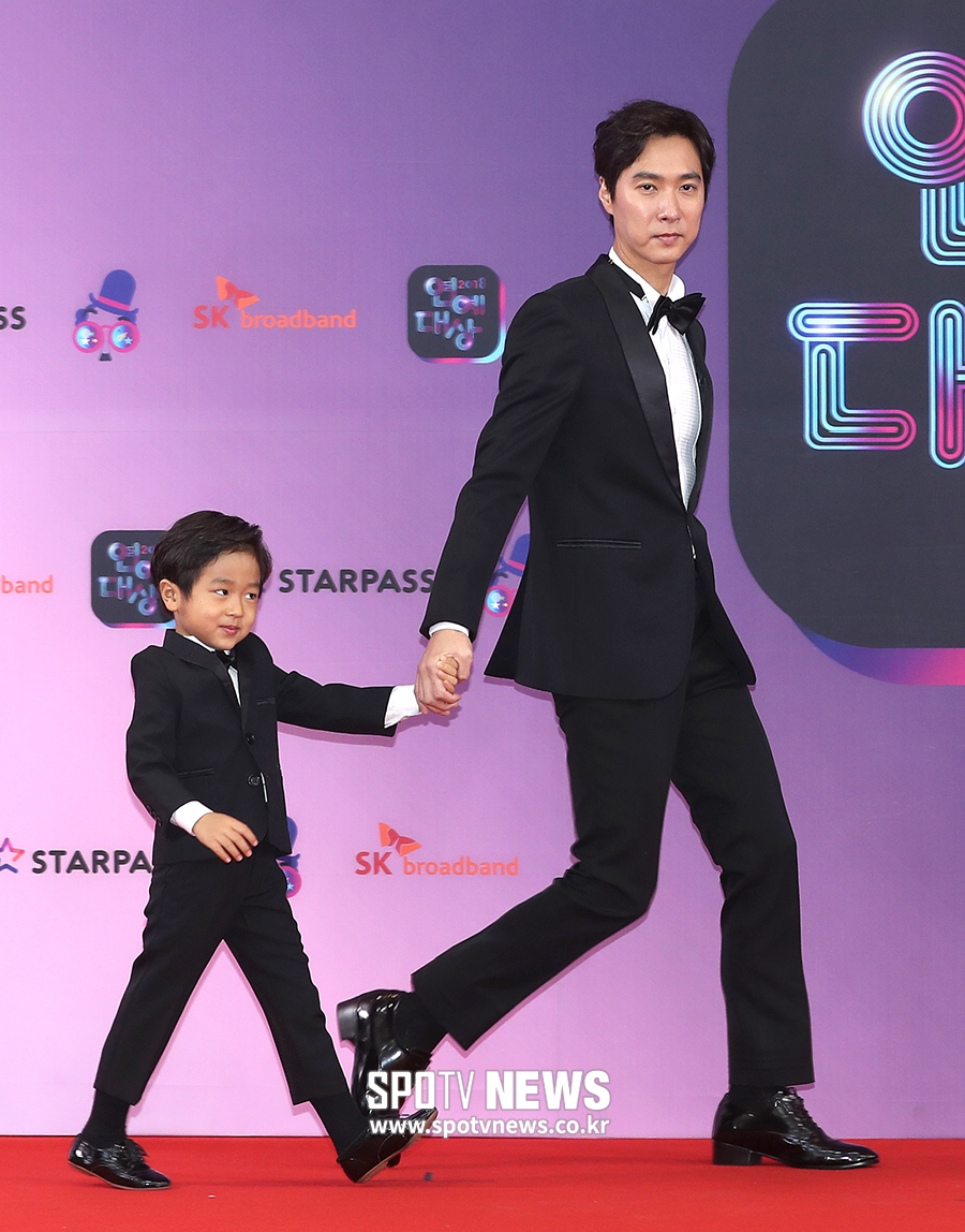 [스포티비뉴스=서울, 곽혜미 기자] 2018 KBS 연예대상 레드카펫 행사가 22일 오후 서울 영등포구 여의도 KBS 본관 시청자광장에서 열렸다. 고지용-고승재 부자가 포즈를 취하고 있다.