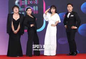 [스포티비뉴스=서울, 곽혜미 기자] 2018 KBS 연예대상 레드카펫 행사가 22일 오후 서울 영등포구 여의도 KBS 본관 시청자광장에서 열렸다. 김민경, 신봉선, 오나미, 송준근이 포즈를 취하고 있다.