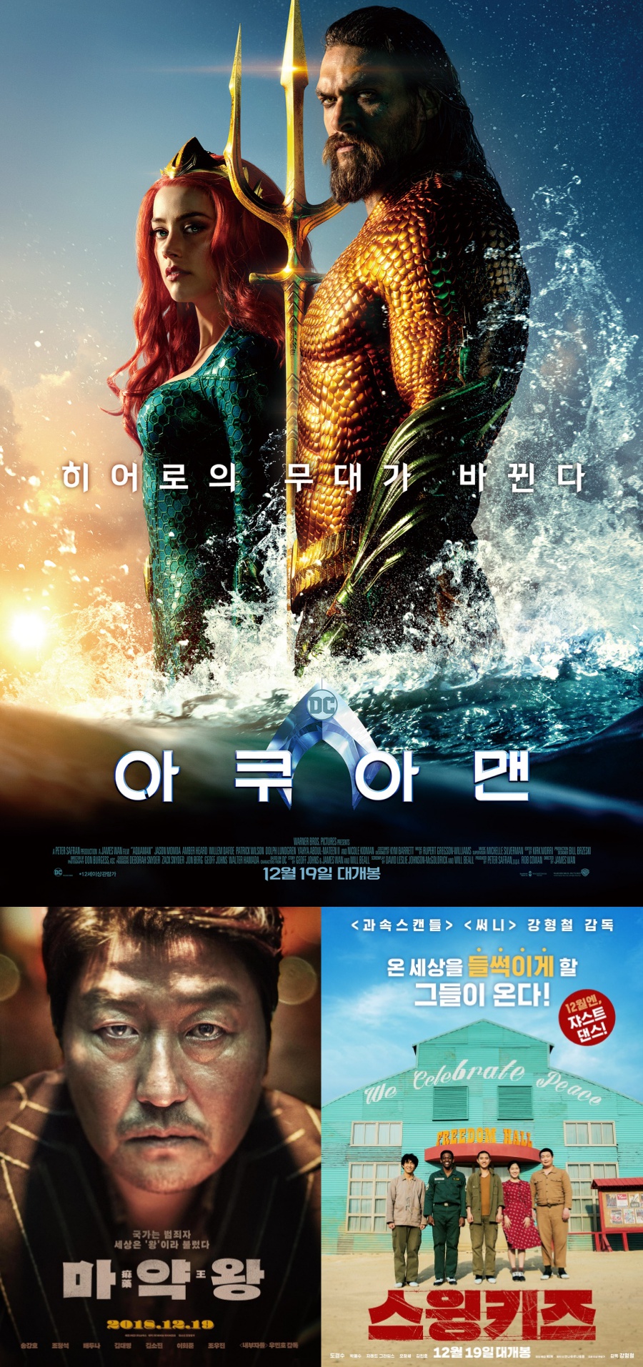 연말 신작 대결에서는 뚜렷하게 승자로 예측되는 작품이 없었다. 그동안 마블 코믹스에 밀려 많은 사랑을 받지 못했던 DC의 '아쿠아맨'과 호불호가 극명하게 갈렸던 '마약왕', 대작들 사이에서 소소해 보였던 '스윙키즈'까지, 어떤 작품이 관객들의 사랑을 받을지 미지수였다.