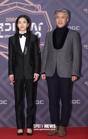 [스포티비뉴스=서울, 곽혜미 기자] 2018 MBC 연기대상 레드카펫 행사가 30일 오후 서울 마포구 상암동 MBC미디어센터에서 열렸다. 배우 박호산(왼쪽), 이설이 포즈를 취하고 있다.