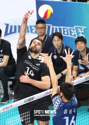 [스포티비뉴스=서울, 곽혜미 기자] 2018-2019 도드람 V리그 남자부 우리카드와 현대캐피탈의 경기가 3일 오후 서울 장충체육관에서 열렸다. 현대캐피탈 파다르가 연타를 시도하고 있다.