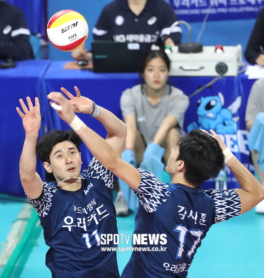 [스포티비뉴스=서울, 곽혜미 기자] 2018-2019 도드람 V리그 남자부 우리카드와 현대캐피탈의 경기가 3일 오후 서울 장충체육관에서 열렸다. 우리카드 노재욱이 속공 토스를 올리고 있다.